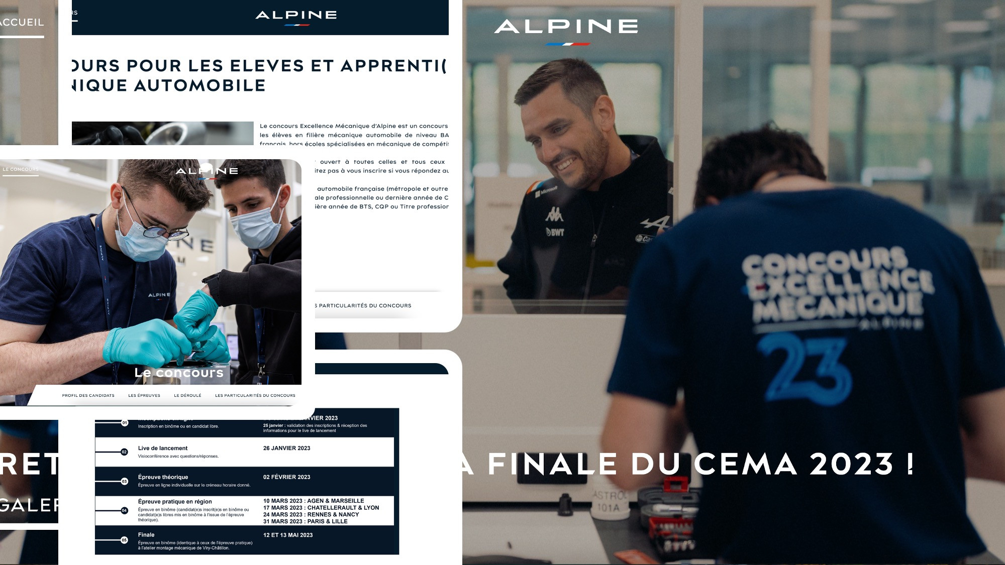 Notre collaboration a abouti à la création d'un mini-site événementiel, conçu spécifiquement pour communiquer efficacement sur le concours et faciliter le processus d'inscription. Notre objectif était de créer une plateforme attrayante et fonctionnelle qui réponde aux besoins spécifiques d'Alpine Cars, tout en assurant une expérience utilisateur optimale.